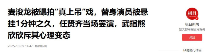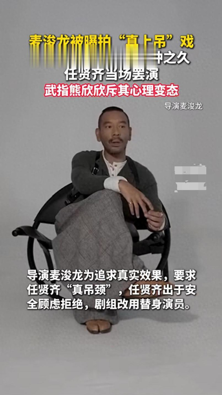 他为了追求更真实的效果,提出要任贤齐实拍,且不说任贤齐年近60岁,就算换个年轻力壮的小伙子,随随便便上吊也是有风险的。