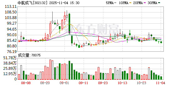 中航成飞11月4日大宗交易平台出现一笔成交,成交量24.60万股,成交金额2259.51万元,大宗交易成交价为91.85元,相对今日收盘价溢价10.30%。该笔交易的买方营业部为平安证券股份有限公司北京北土城西路证券营业部,卖方营业部为平安证券股份有限公司上海临港新片区分公司。