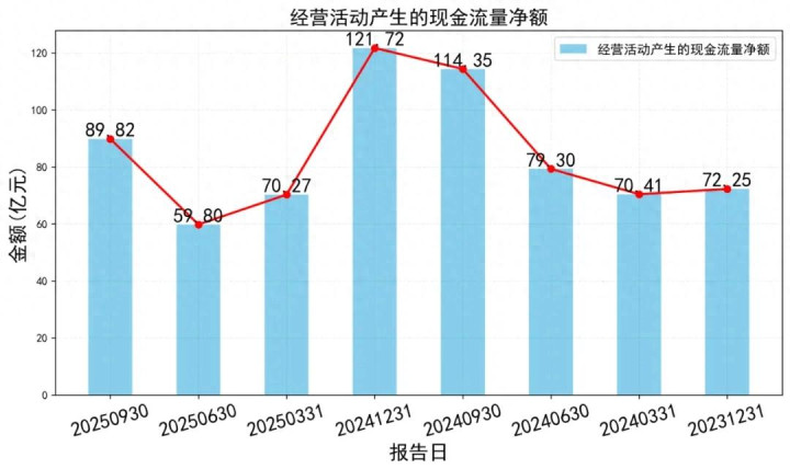 2. 经营活动现金流净额只有89.8亿(现金流量表数据)。