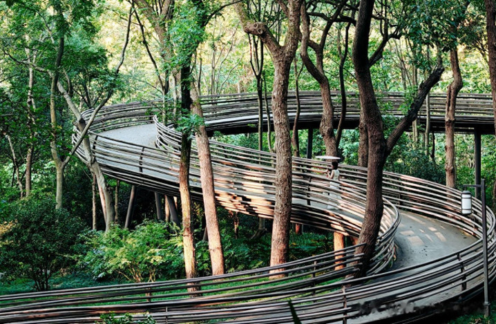 其中,白蛇飞渡,为免费的爱情园林,氛围相当独特,“蛇形”空中连廊中,景色绝美又梦幻,拍照片超赞!