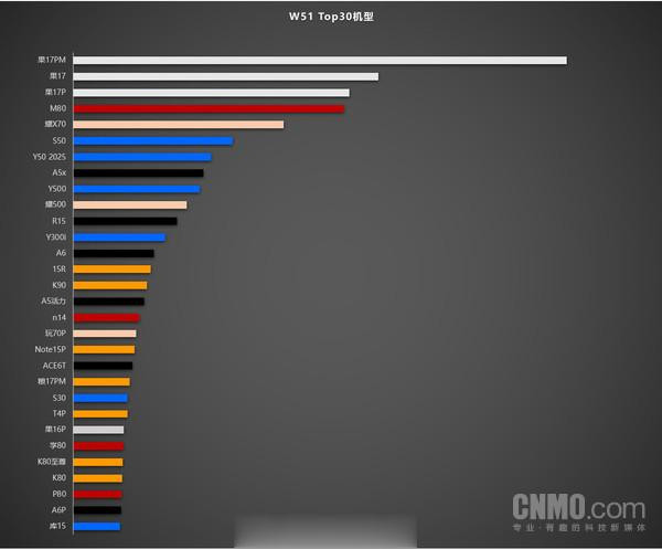 【CNMO科技消息】12月26日,数码博主“智慧芯片案内人”发布2025年第51周手机销量TOP30。CNMO注意到,在该榜单中,旗舰机型共有8款上榜。其中,苹果有4款,华为有2款,小米有1款,vivo有1款。