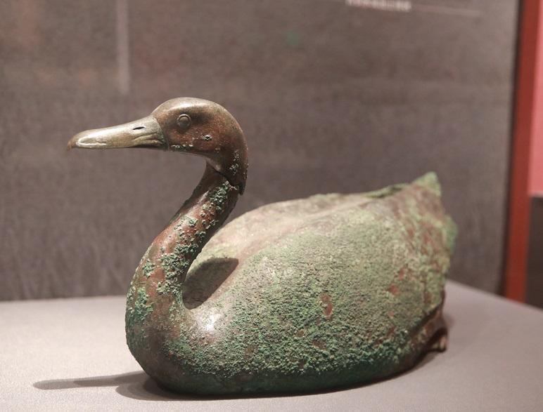 陕西考古博物馆馆藏的青铜鸿雁(资料照片)。